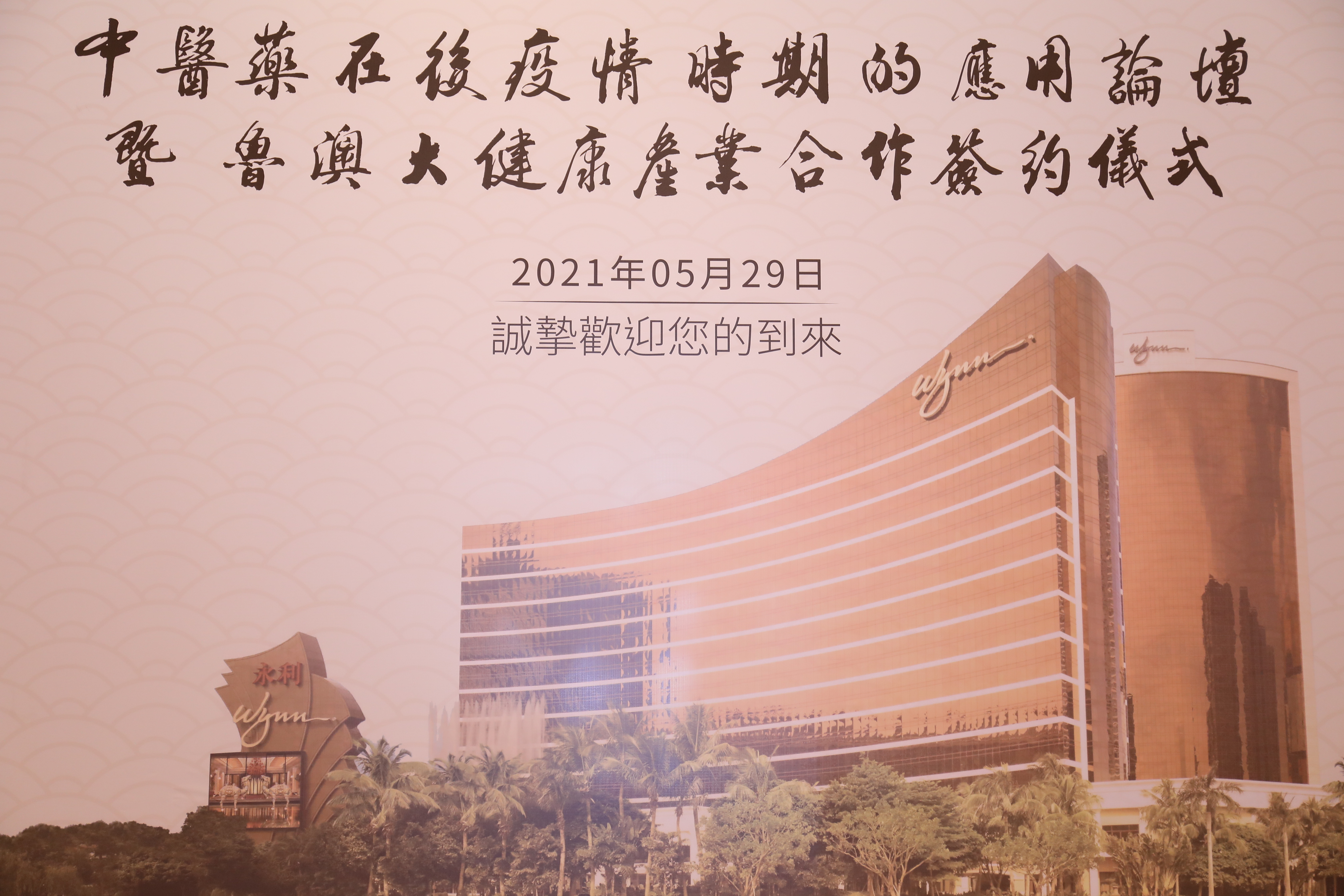 中医药在后疫情时期的应用论坛暨鲁澳大健康产业合作签约仪式,2021年5月29日下午假永利澳门宴会厅举行。